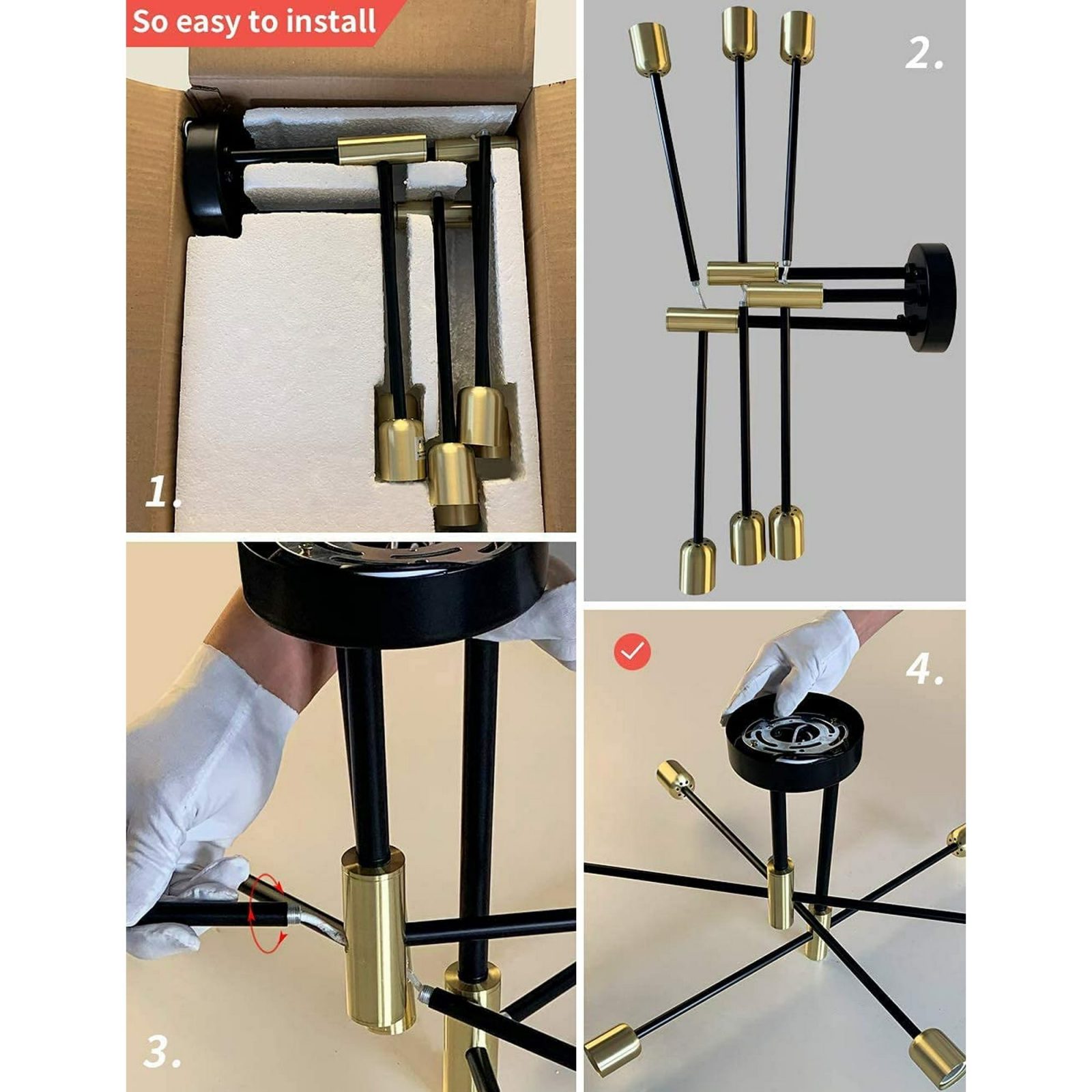 • 💡 Elegant Design: With its sleek black arms and gold interface, this chandelier exudes a modern yet timeless elegance, adding a touch of sophistication to any space.
